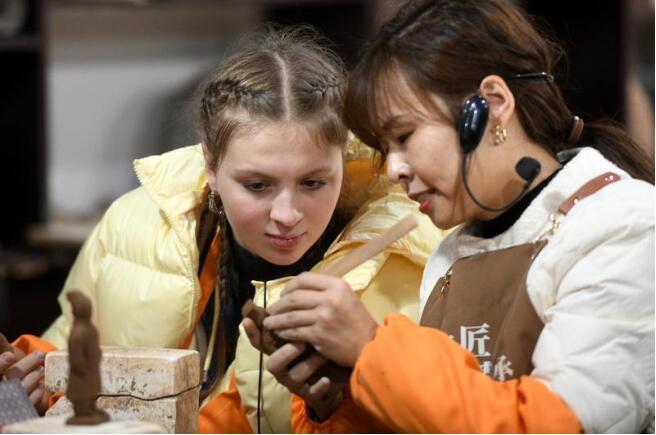 “他们最投入的,往往是最后的精修阶段。”韩咪说。脱模后的陶俑需用竹刀细心刮削打磨,雕刻细节。此时,许多体验者格外专注,甚至婉拒协助。“他们会说,‘请让我自己完成。’即便刻痕生涩,他们也珍视这份亲手赋予‘生命’的过程。”韩咪认为,这份专注本身,便是对工匠精神最真诚的礼敬。当指尖共同凝聚于创作,语言与文化的隔阂悄然消融,泥土成为最朴素而有效的“通用语言”。
