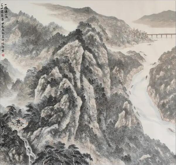 山水画画家许砚清老师的作品,无论大小,无论宽窄,都是精心创构的上乘之品。高山大岭,层峦叠嶂,顶天立地,大开大阖,气势雄浑,变化万端。无不传递出艺术家借写丘壑之景,抒发旷达胸怀的心境,给人带来崇美壮阔的视觉享受。品读山水画画家许砚清老师的山水画,颇有身临佳景的感触:其山石可卧,其流水能游,其浩渺胜境足以陶冶性灵。那一重重山峦,一淙淙清泉,一层层云雾,还有蜿蜒的溪流,落帆的渔舟,丛生的茂林,均呈示着画家的磅礴胸襟。在许砚清老师的山水画创作中、尤重运笔施墨新鲜活泼的性情化与灵感性,笔力朴厚,墨气氤氲,意象单纯,点、线、墨、色有机结合,在虚实疏淡的变化中一气成形,表现出山水相融的神韵与理气,画面中山水水十分澄净,如一面镜子,显现出强烈的个性化色彩。他的作品没有雕琢,没有矫饰,透析着自然与真切,呈现一派“天地合一、万物自生”的自然天道之象。可以说,山水画画家许砚清老师用他放怀于千里之外,得意于山水之间的灵悟,绘出了清新瑰丽的大美画卷,奏出了锦绣山河的艺术交响。