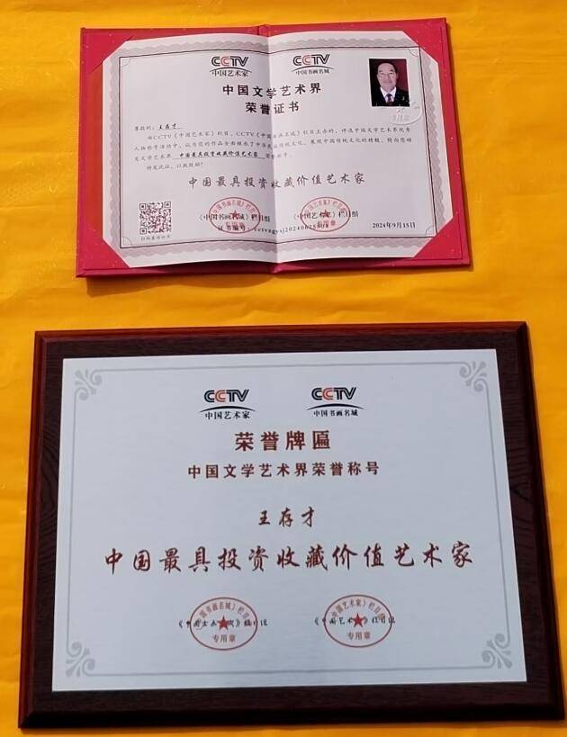 被中国文学艺术界: CCTV中国艺术家栏目,CCTV中国书画名城栏目,颁发:中国投资收藏价值艺术家荣誉称号。被中国专业技术人才管理协会聘:客座教授【高维能量书法领域创始人】。被中国管理科学研究院聘:客座教授【高维能量书法领域】。并授予:中华民间技艺传承人荣誉称号。授中国管理科学研究院颁发技艺专长证书:民间祈福师、人体潜能疗养师、国学文化传承师、笔杆子风水师。
