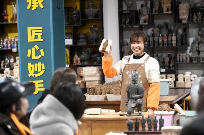“文化传播需要触点。严肃深奥的历史,需要一个轻松、有趣的入口。”韩咪说。这些“潮玩”兵俑,融合了刺绣老虎帽、“泥叫叫”等本土非遗元素,形态可掬,让许多年轻游客爱不释手,成了他们带回家的“文化大使”。