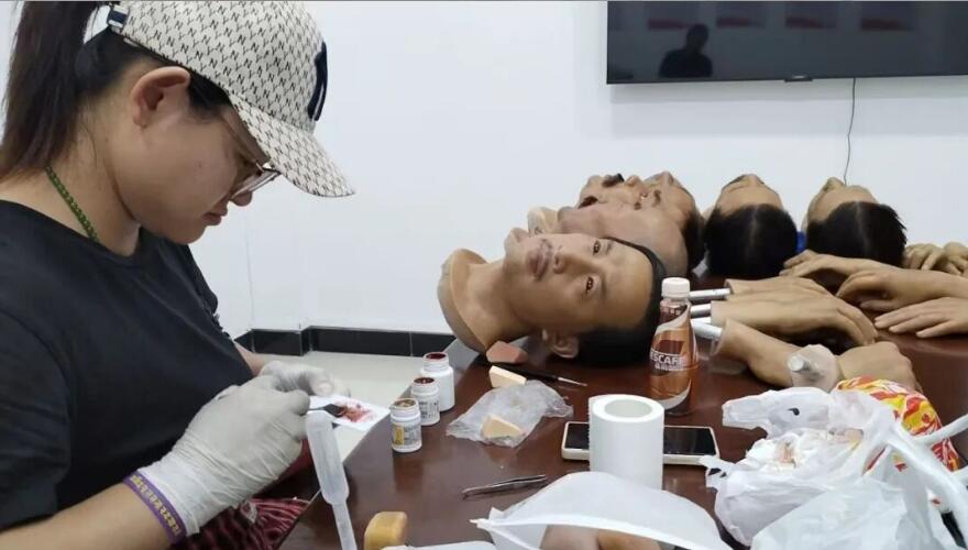 妙吉祥雕塑的蜡像工艺制作是非常细心耐心的一门工艺,从收集资料、到做泥稿、翻模、浇蜡、上色、再到刻画毛孔皱纹、粘毛发、穿衣服,每一个环节都不能省。就如同我亲自观看一位民俗仿真硅像手臂的制作,一位大姐姐,她拿着一把小小的刮刀,轻轻的,细细的,一下又一下,有长有短,有深有浅,有慢有急,有缓有张,千余下的挥刮,才有了逼真的纹路,就如同你手拿放大镜看我们自己的手掌纹,那血管的纹路都能清晰显现,如果把蜡像手包起来让我识别,我真不知道她是真的还是假的,因为她比我的手臂都要好看,都要细发,都要富有生命力,硅胶像制作,就这一点实力的展现,足足可以吊打多少高科技的现代机械制作,传统手工,必有她的精华,必有她的韵味。