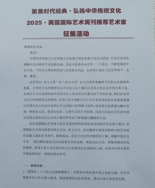 2025·美国国际艺术周刊推荐艺术家征集活动