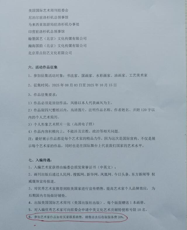 6、参加艺术家作品如有买家联系销售,销售出去后收取服务费20%。